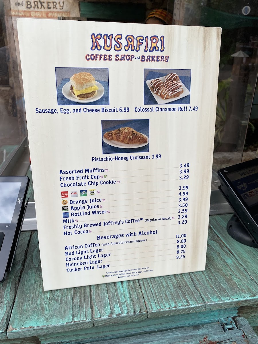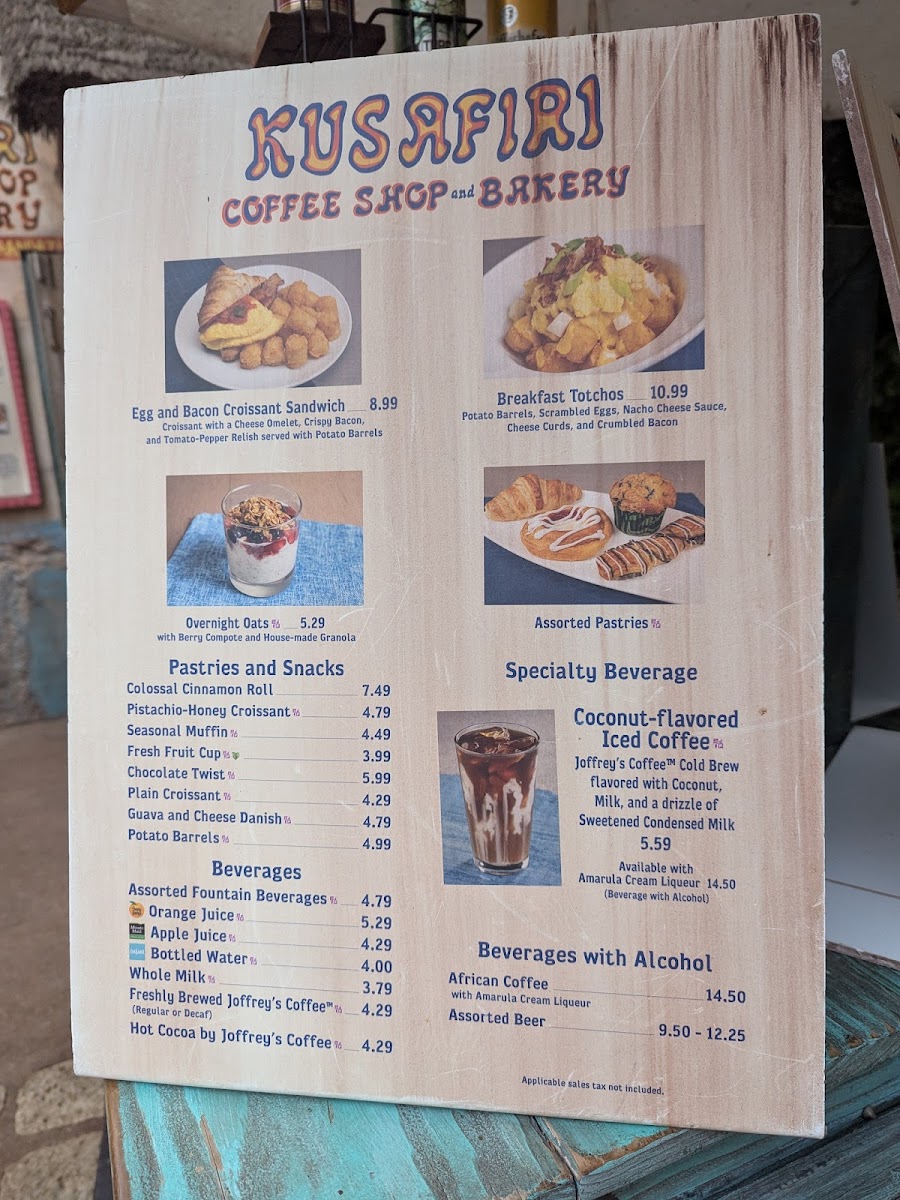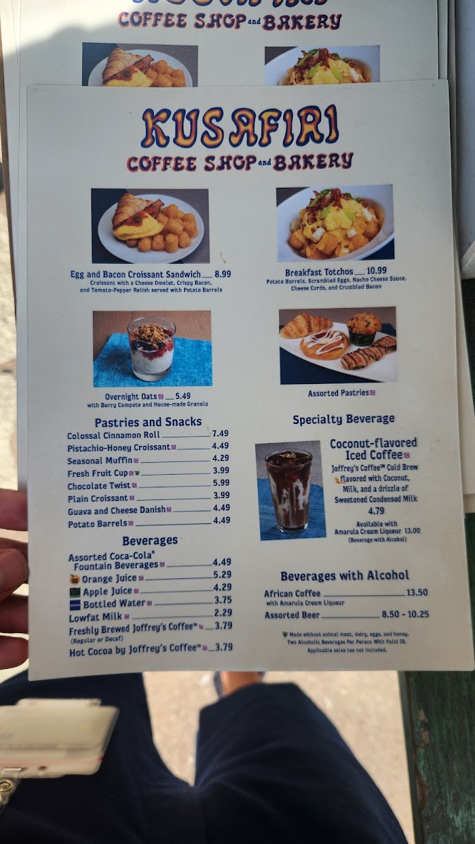 For those in the mood for something a little stronger, Kusafiri offers a selection of Alcoholic Beverages, including the creamy Coconut-flavored Iced Coffee with Amarula Cream Liqueur, the bold African Coffee, and a variety of beers ranging from $9.50 - $12.25.