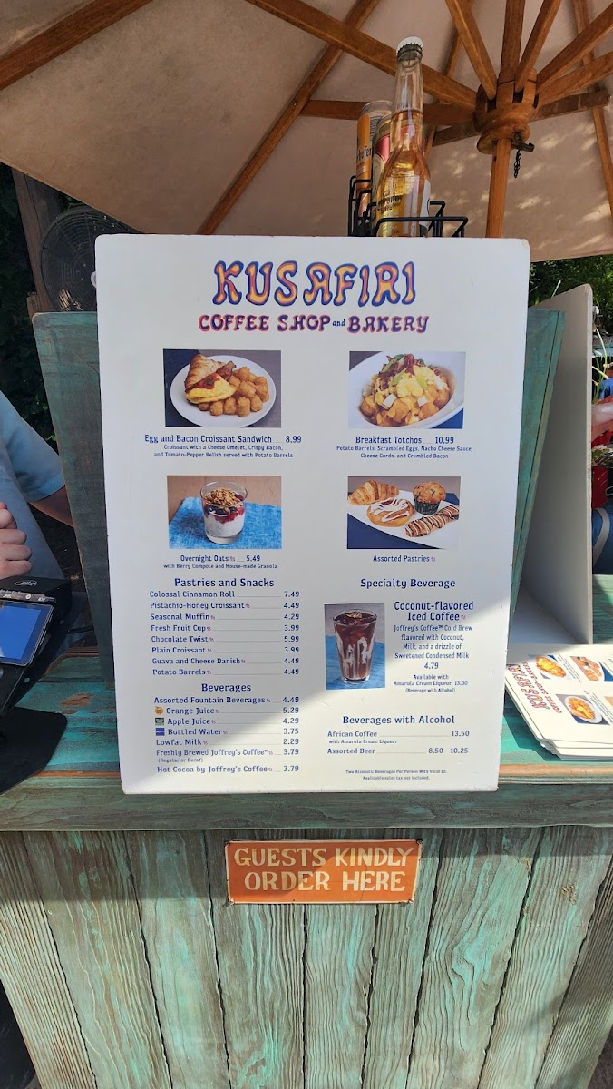 For beverages, Kusafiri has a variety of choices, from classic Assorted Fountain Beverages to fresh Simply® Orange juice, Minute Maid® Apple Juice, and refreshing DASANI® Bottled Water. They also offer Whole Milk for those looking for a more traditional drink.